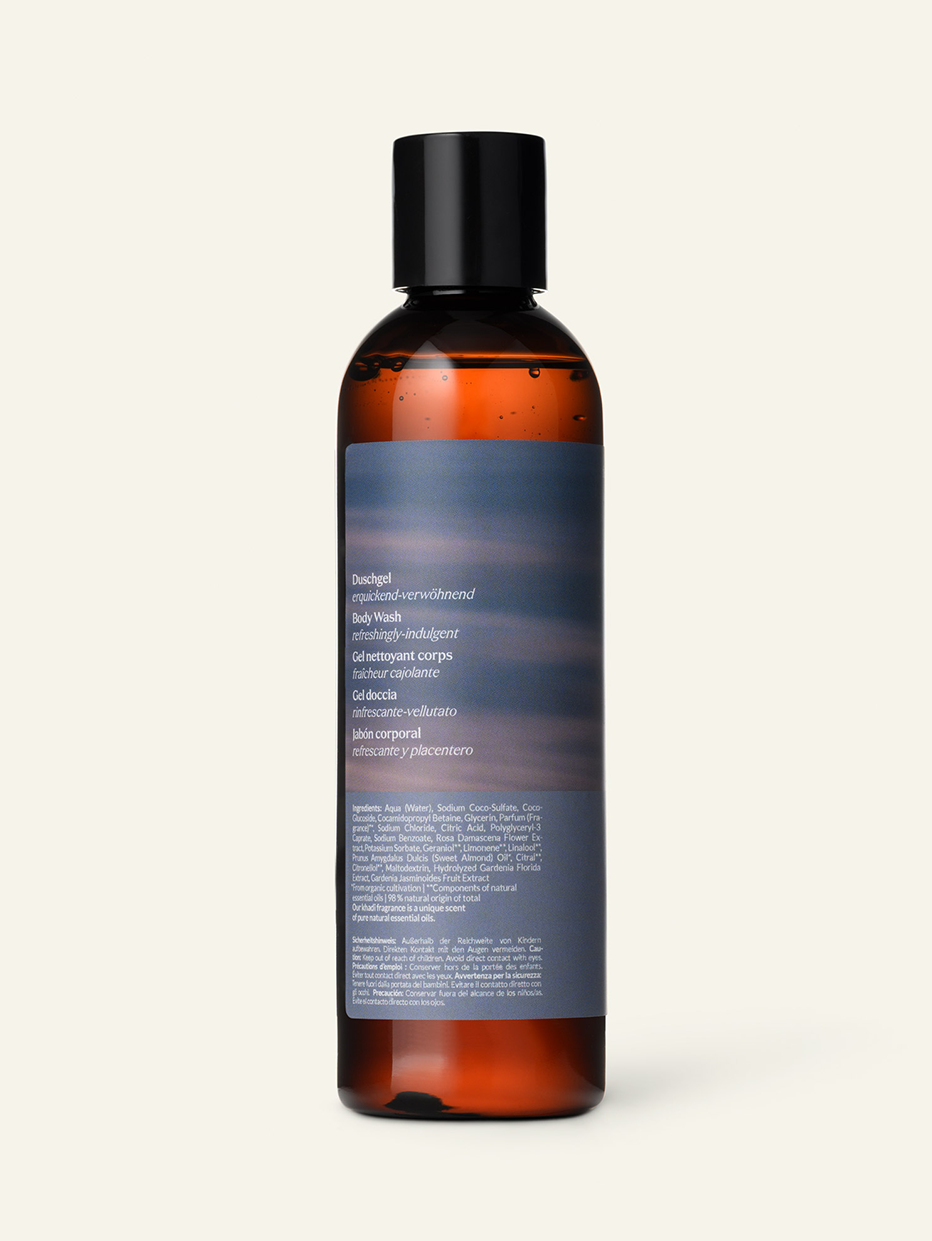 W ajurwedyjskiej pielęgnacji urody róża jest symbolem miłości do skóry. Ze względu na swoje właściwości regenerujące i równoważące jest ważnym składnikiem wielu ajurwedyjskich rytuałów pielęgnacyjnych. Nasz żel do mycia ciała Himalaya Rose pachnie różami uprawianymi specjalnie w regionach Himalajów. Są one uważane za szczególnie cenne i bogate w olejki eteryczne oraz substancje czynne. Ich delikatny aromat jest odświeżony nutami werbeny, bergamotki i mandarynki oraz owocową nutą maliny. Dopełnieniem zapachu jest nuta drzewnej, ciepłej paczuli.