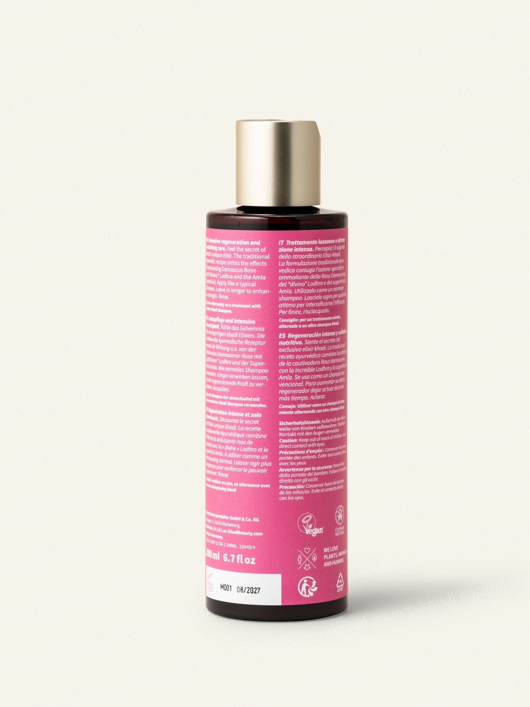 Zawartość eliksiru Rose Repair w szamponie khadi wynosi do 20%, podczas gdy w tradycyjnych szamponach kosmetycznych naturalnych wynosi ona tylko 2-5%.