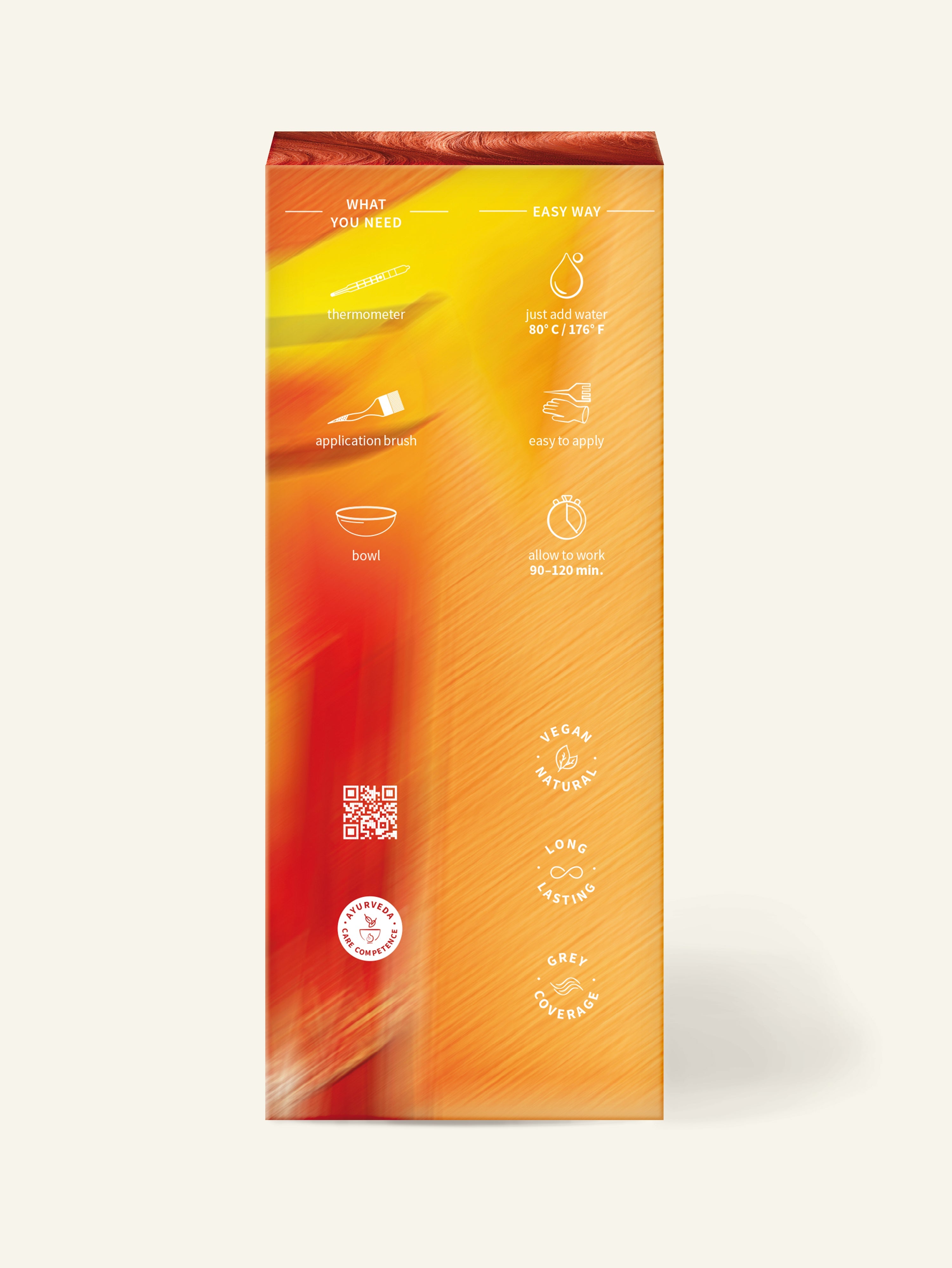Ayurvedyjskie ekstrakty roślinne zawarte w tym kolorze to coś więcej niż tylko pigmenty – to magiczne połączenie pigmentów roślinnych i pielęgnacji. Otulają każde włosy jedwabistym blaskiem i wzmacniają je od wewnątrz. Zgodnie z naszymi surowymi zasadami jakości zbieramy nasze rośliny tylko raz w roku – dokładnie wtedy, gdy ich pigmenty osiągają najwyższą moc. Wybieramy wyłącznie najlepsze, ręcznie zbierane części roślin, rezygnując z łodyg i łodyżek. Następnie są one mielone w najnowocześniejszym procesie do postaci ultra drobnego proszku.