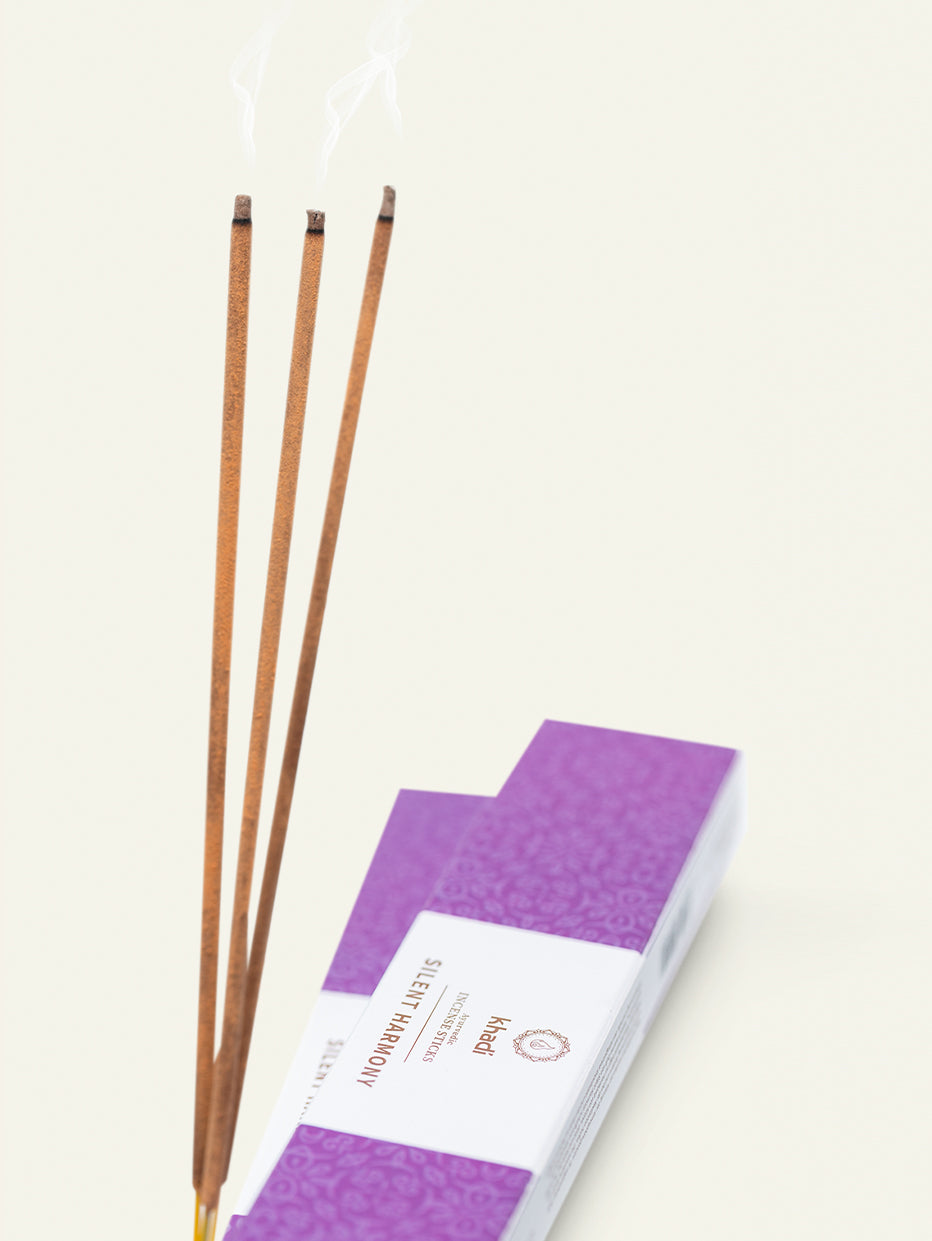 Wszystkie kadzidełka khadi są wytwarzane ręcznie zgodnie z indyjską tradycją z czystych naturalnych olejków roślinnych, żywic i ziół – i nie zawierają żadnych dodatków pochodzenia zwierzęcego, toksycznych ani petrochemicznych.
