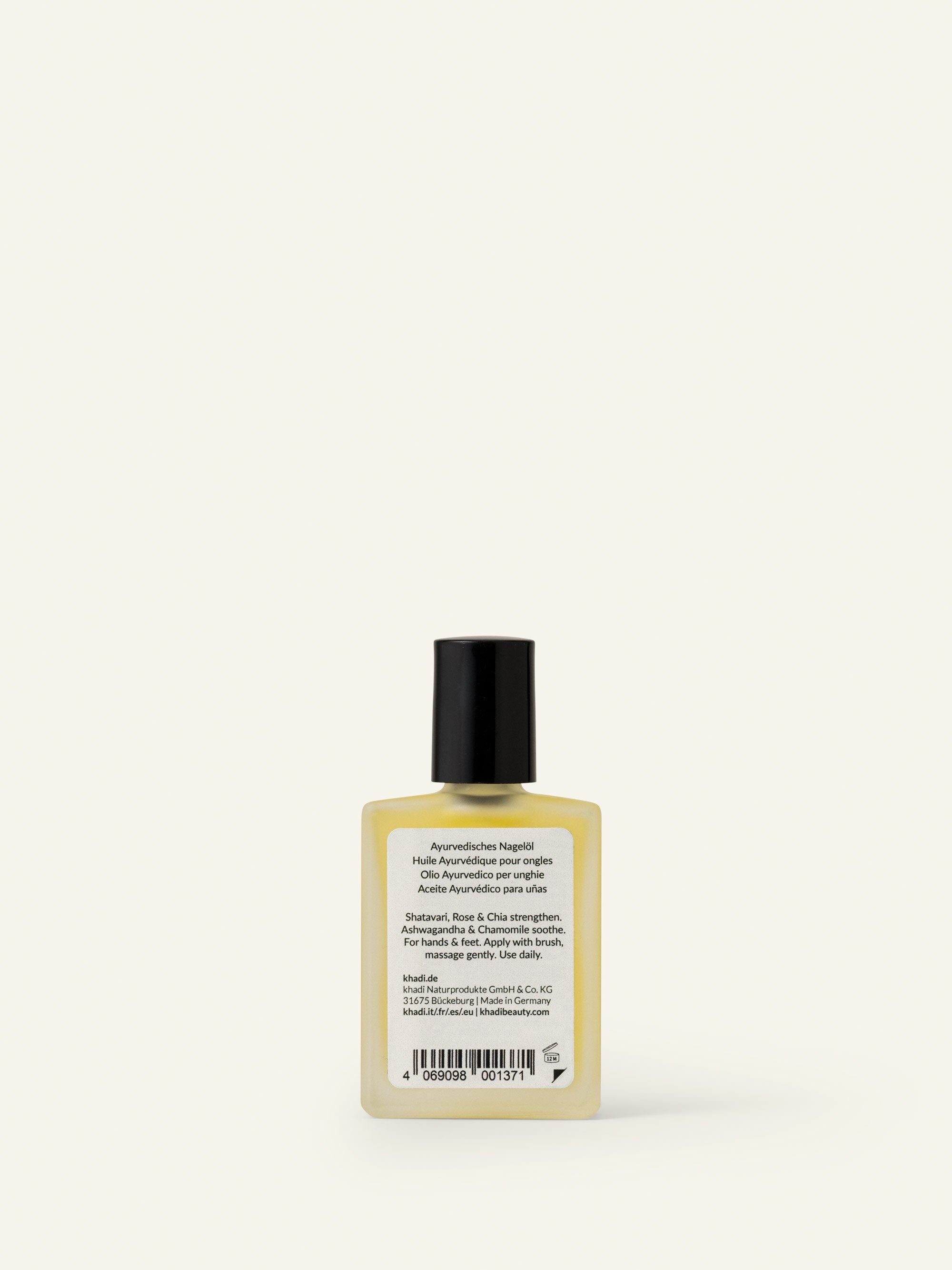 Ajurwedyjska pielęgnacja dla mocnych, elastycznych paznokci i delikatnych skórek: olejek do paznokci khadi Shatavari Nourishing Nail Oil łączy w sobie moc cennych olejów roślinnych tłoczonych na zimno z ajurwedyjskim eliksirem leczniczym z 7 ziół i korzeni, takich jak shatavari, ashwagandha, amla i malwa indyjska. Kompozycja 5 olejków z migdałów, jojoby, słonecznika, drzewa sandałowego i kiełków ryżu intensywnie odżywia, nawilża i zachowuje elastyczność skórek.