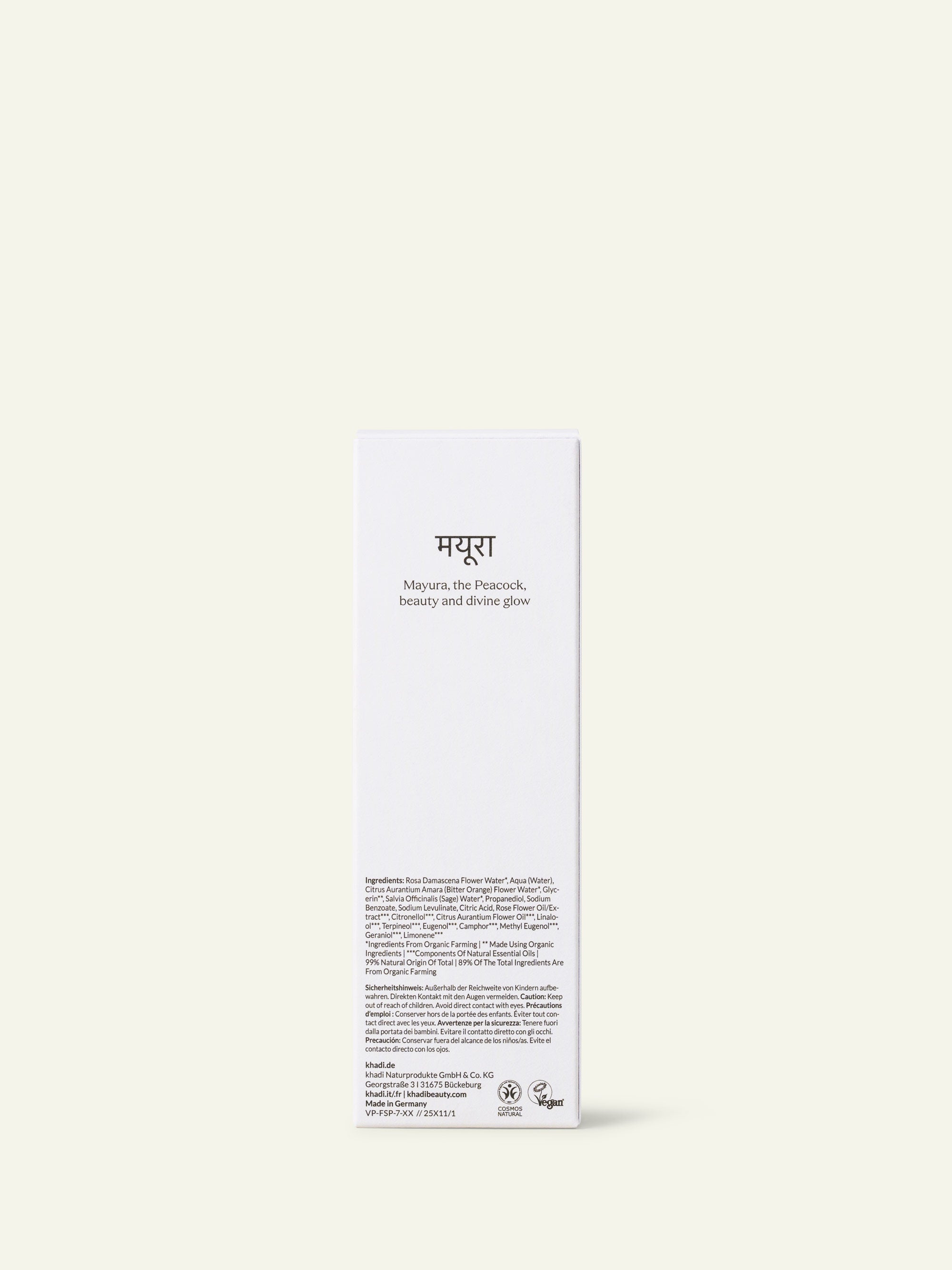 Jak wszystkie produkty khadi, także Mayura Glow Tonic i Mayura Glow Serum są w 100% naturalne, wegańskie i wolne od syntetycznych dodatków.