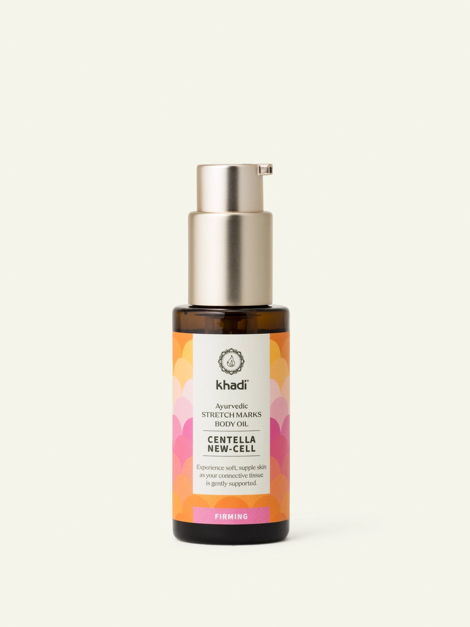 Pożegnaj się z oznakami przedwczesnego starzenia się skóry i przywróć jej blask dzięki olejkowi do ciała Centella New-Cell od khadi.