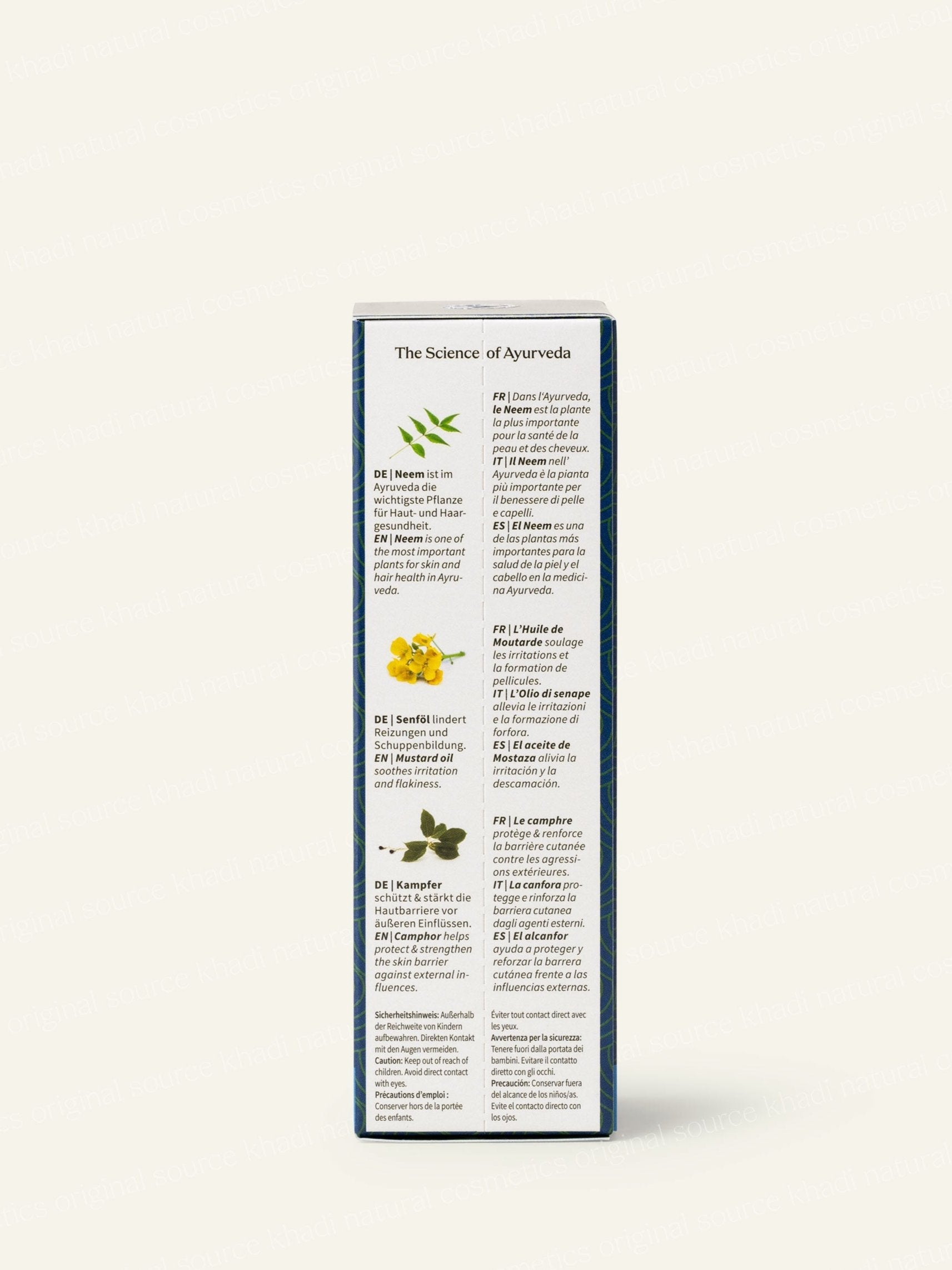 Dzięki swoim różnorodnym właściwościom korzystnym dla skóry i włosów, Neem jest znany w ajurwedzie jako cudowne drzewo dla zdrowia włosów. Jego właściwości przeciwbakteryjne łagodzą podrażnienia skóry głowy, a jednocześnie nawilżają włosy, głęboko je odżywiając i nadając im naturalny połysk. Każde użycie łagodzi podrażnienia, wzmacnia cebulki włosów i zwiększa odporność włosów na czynniki zewnętrzne.