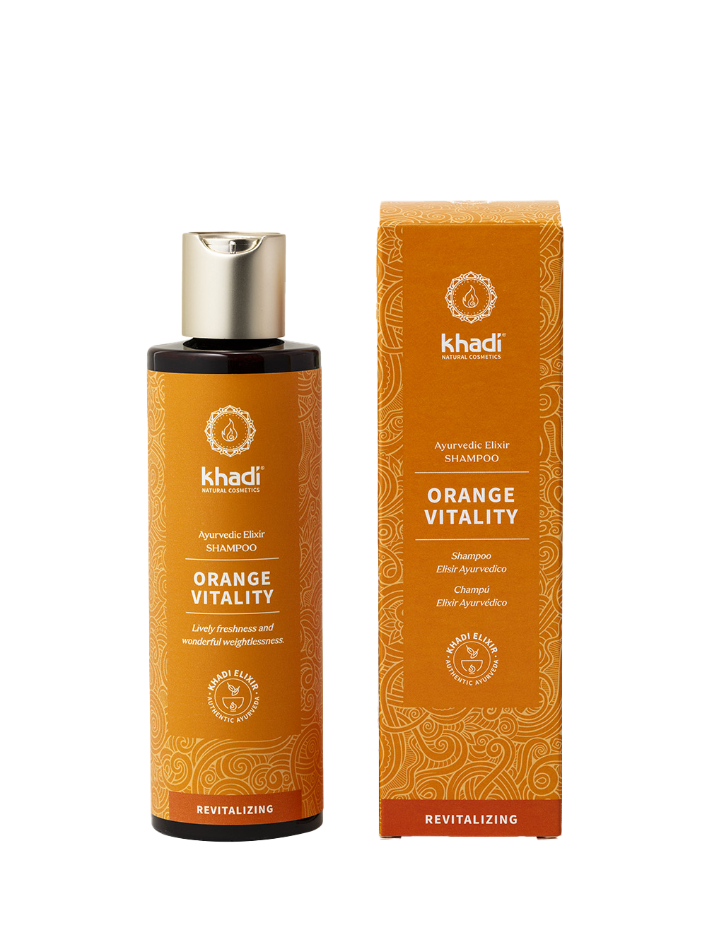 Zaczynając od ajurwedyjskiego szamponu do włosów z khadi Eliksirem: już sam zapach pobudza zmysły i pozwala zanurzyć się w świecie pełnym świeżej energii, lekkości i radości życia. Silna formuła tradycyjnych ajurwedyjskich ziół leczniczych i owoców, takich jak indyjski berberys, trawa orzechowa, Amla i olejek eteryczny z kwiatów pomarańczy, delikatnie oczyszcza włosy, nawilża je, dostarcza witamin i przeciwutleniaczy, które pomagają im się zregenerować i wzmocnić. Już podczas mycia włosów poczujesz, jak Twoje zmęczone włosy budzą się dzięki czystej energii natury, a cebulki włosów zaczynają się ożywiać.